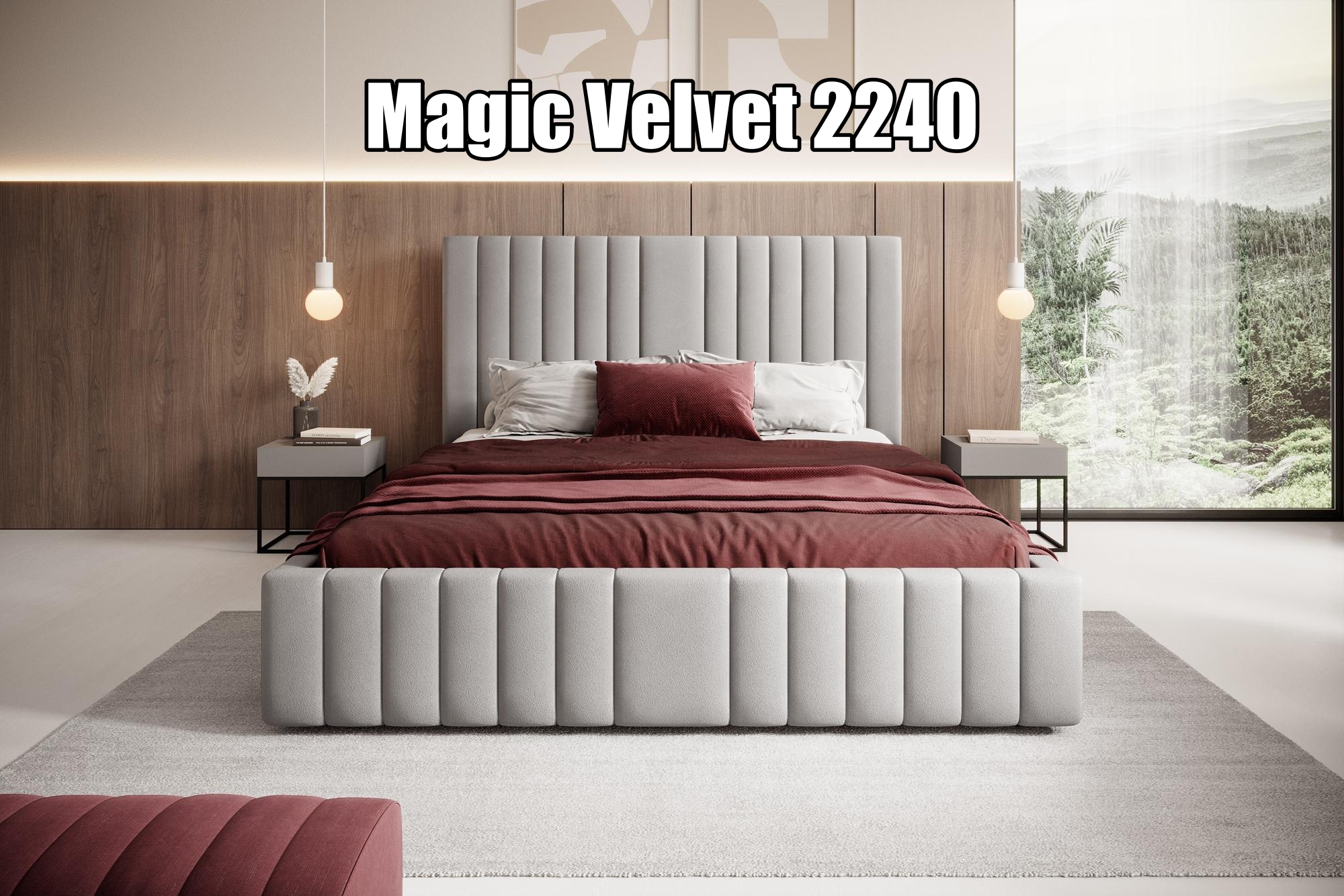 Alva to łóżko, które zachwyca swoją prostotą i dopracowaną formą. Wysoki zagłówek o wysokości 110 cm, wykończony miękką pianką 3 cm, ozdobiono wyrazistymi pionowymi przeszyciami, które tworzą efekt rytmicznego, nowoczesnego podziału. Ta sama forma zdobi również przód łóżka, tworząc harmonijną i elegancką całość.
