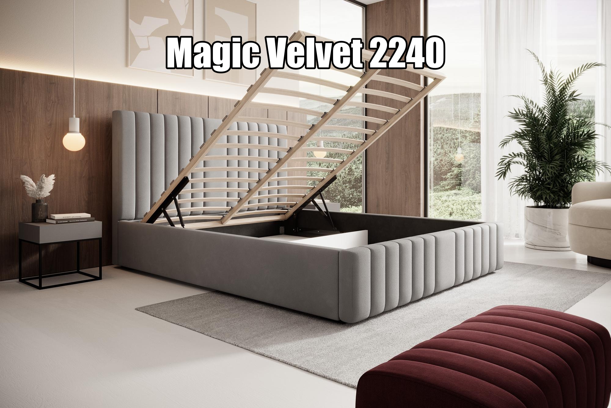 W standardzie łóżko posiada drewniany stelaż z 32 brzozowych listew, który gwarantuje stabilność i elastyczne podparcie materaca. Dla jeszcze większego komfortu możesz wybrać stelaż metalowy z siłownikami gazowymi – ułatwiający dostęp do pojemnika.