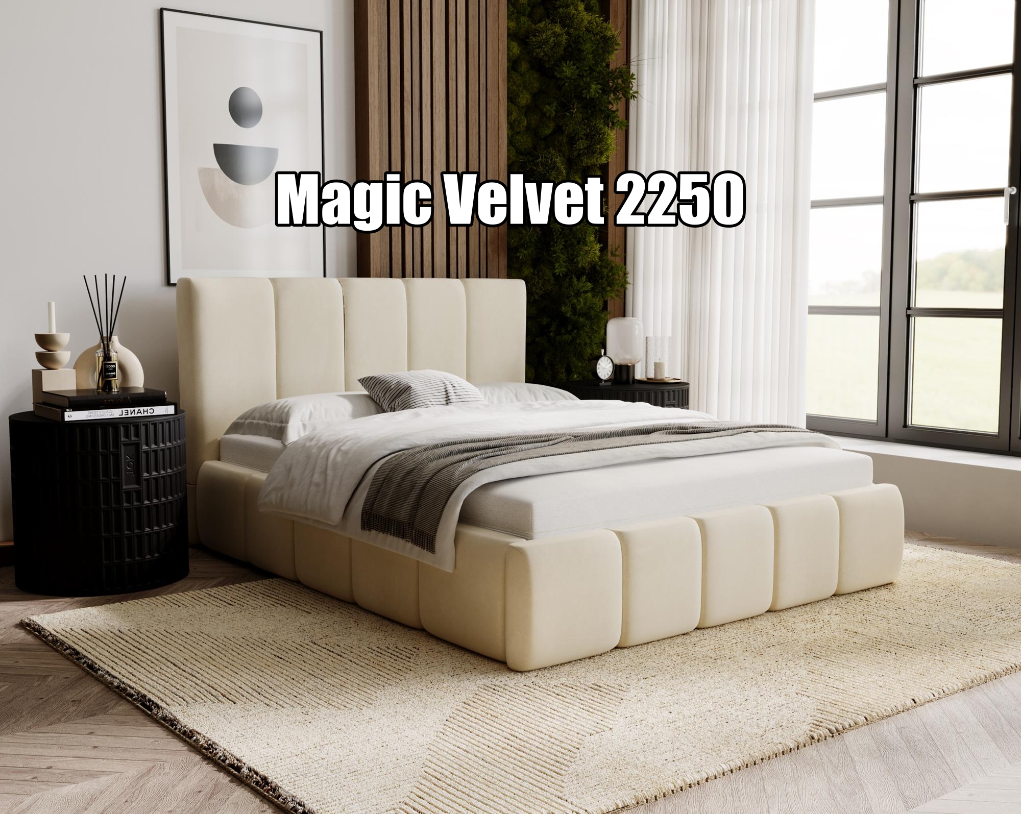Wykończenie zagłówka, przodu i boków wykonano z miękkiej pianki o grubości 3 cm, co sprawia, że cała konstrukcja jest nie tylko efektowna wizualnie, ale też niezwykle komfortowa. Chromowane nóżki o wysokości 2,5 cm dodają łóżku subtelnej lekkości i elegancji.