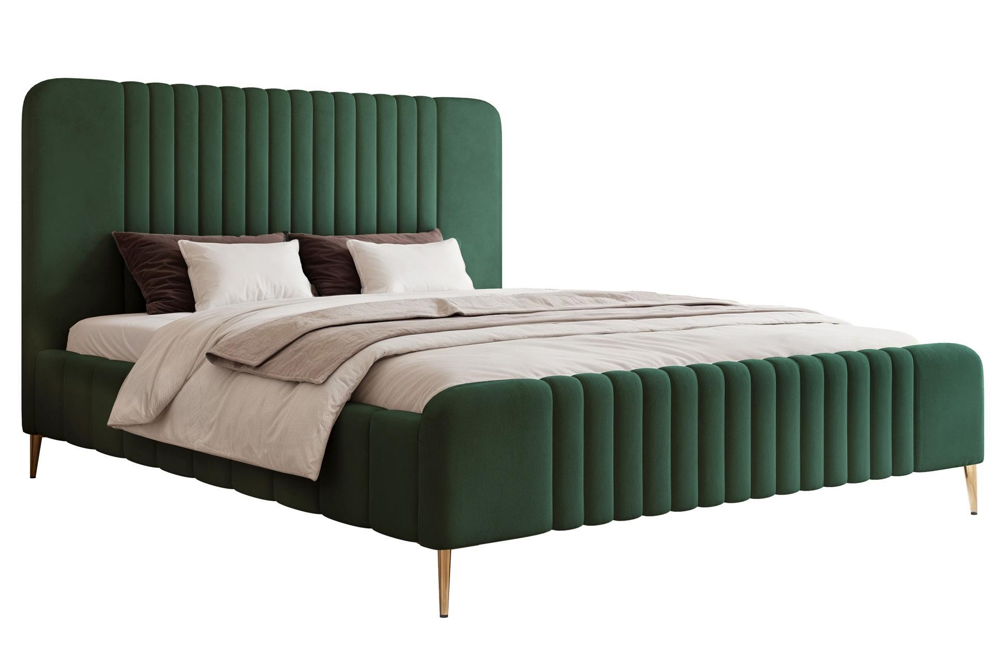Stylowe, zaokrąglone wezgłowie i przód łóżka.