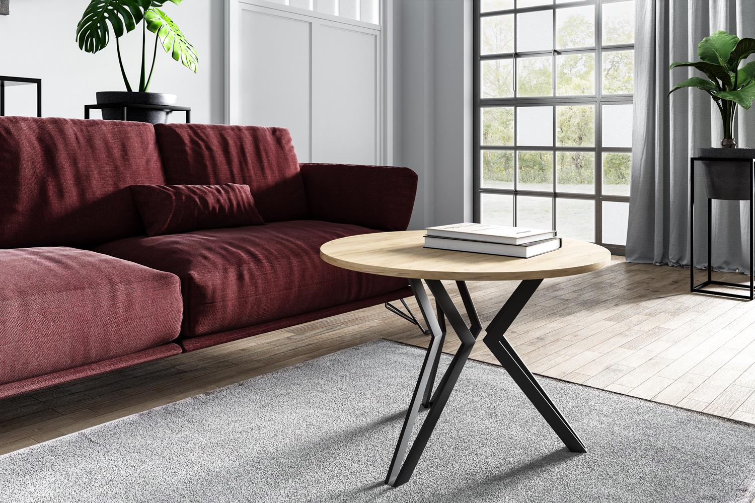 Nowoczesny kształt i oryginalnie wygięte nogi w formie trójkątów nadają mu niepowtarzalny wygląd, który wyróżni każde wnętrze. Wysokiej jakości płyta laminowana zapewnia odporność na odbarwienia i uszkodzenia, dzięki czemu stolik pozostaje piękny i trwały przez długie lata.