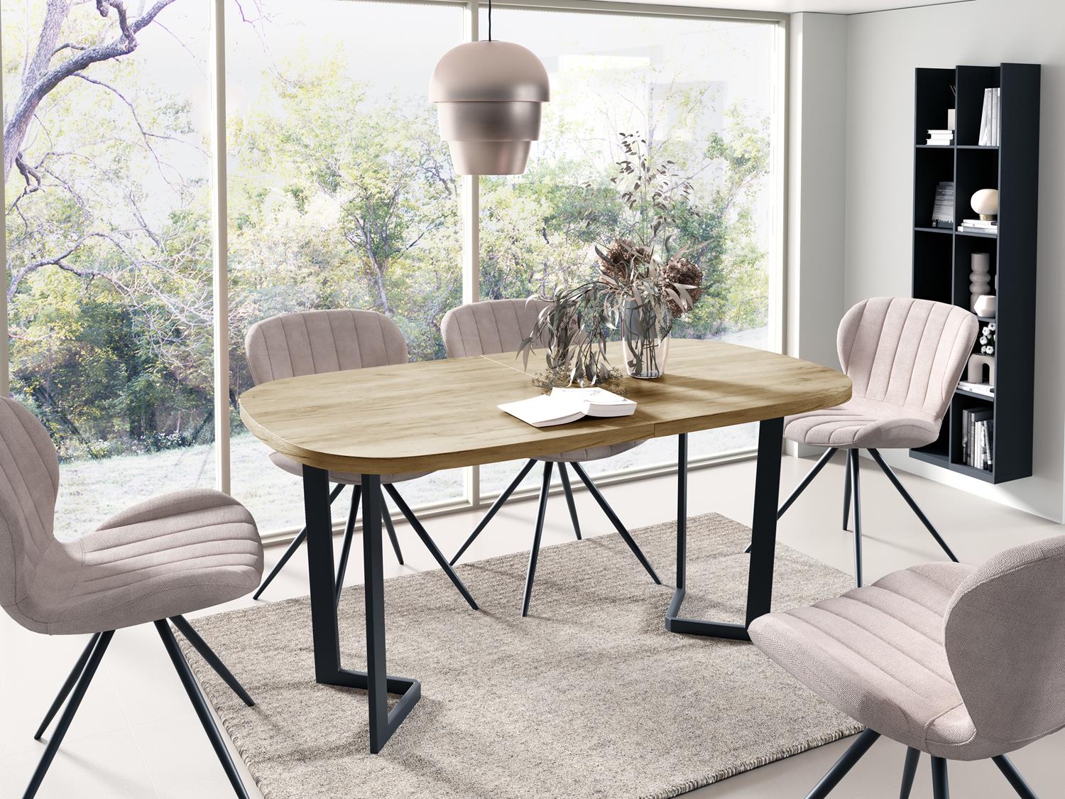 Jeśli szukasz stołu, który łączy nowoczesność, wygodę i ponadczasową prostotę — PADME będzie idealnym wyborem. Dzięki owalnemu kształtowi, stabilnej stalowej podstawie i praktycznej funkcji rozkładania doskonale sprawdzi się zarówno w codziennym funkcjonowaniu, jak i podczas rodzinnych spotkań. Jego industrialny charakter nada wnętrzu wyrazistości, a wysoka jakość wykonania zapewnia trwałość na lata.